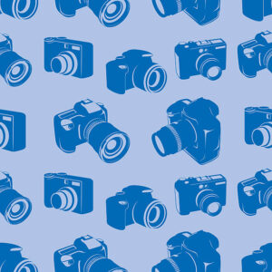 A collection of modern digital cameras as a seamless repeatable background pattern.